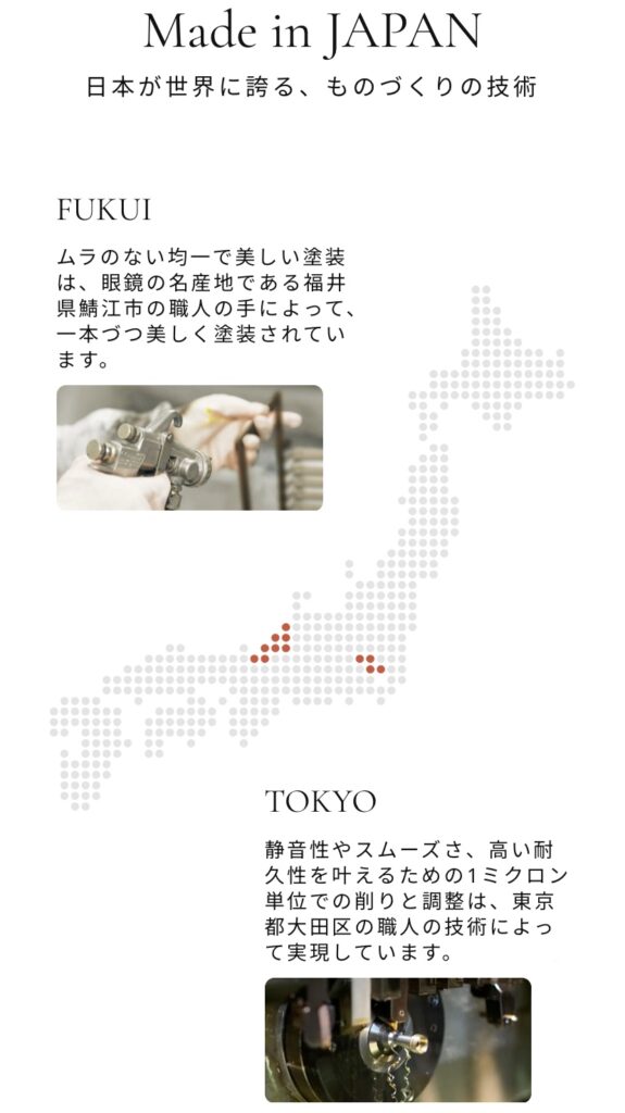 | 製造場所 | 中国 | 日本 福井県 東京都 |