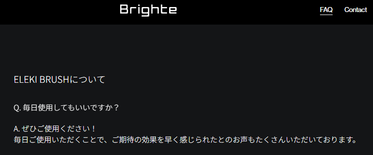エレキブラシプラスの商品ページや取り扱い説明書に使用頻度について記載はありませんが、BrighteのFAQに「エレキブラシは毎日使用してもいい」と回答があります。