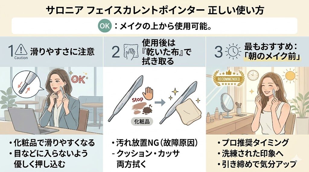 サロニアポインターは高価(23,980円)ですが、価格に見合ったこだわりと技術が詰まっており、きれいになる過程を楽しみながら使い続けられる美容ツールです。