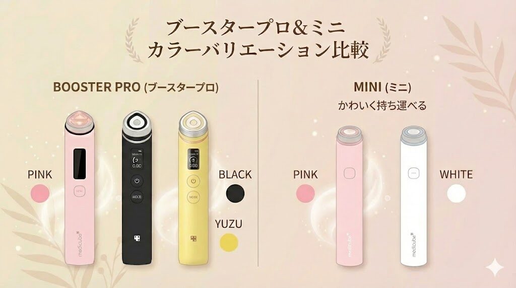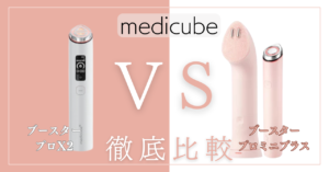 ブースタープロとミニプラスはどちらもメディキューブの美顔器です。