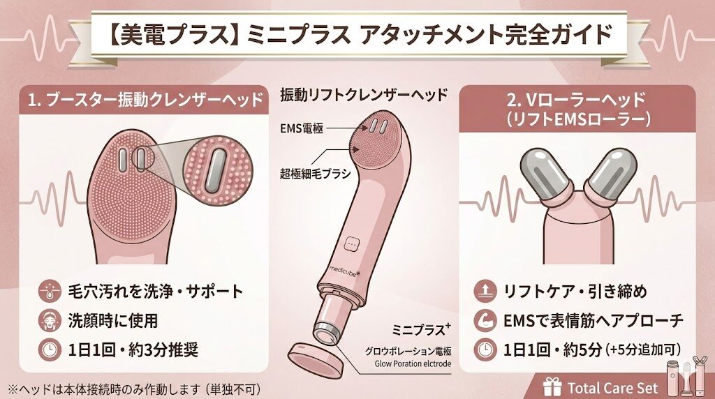 本体は浸透ケアをメインにした設計ですが、最大の特徴はアタッチメントを交換できる拡張性にあります。